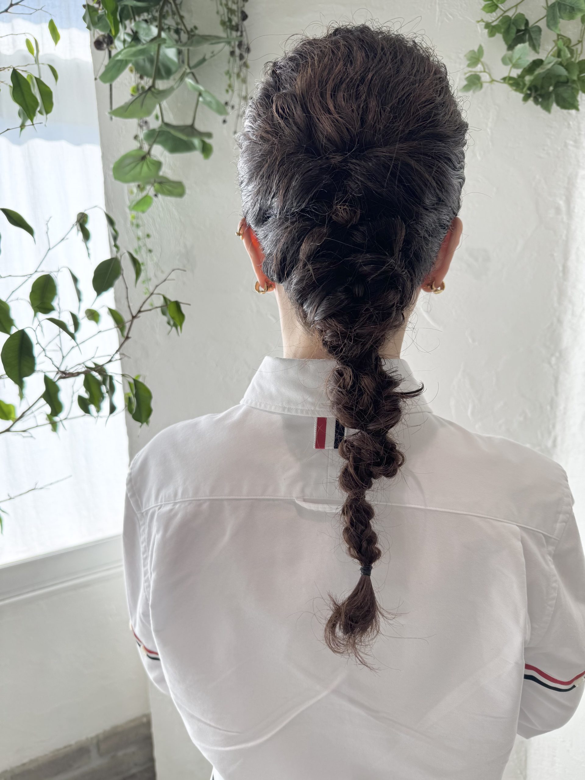 hair/北崎麻美 基本の一束をアレンジした、 大人女性のヘアセット。 お客様の持つ、素敵なくせ毛を活かして。