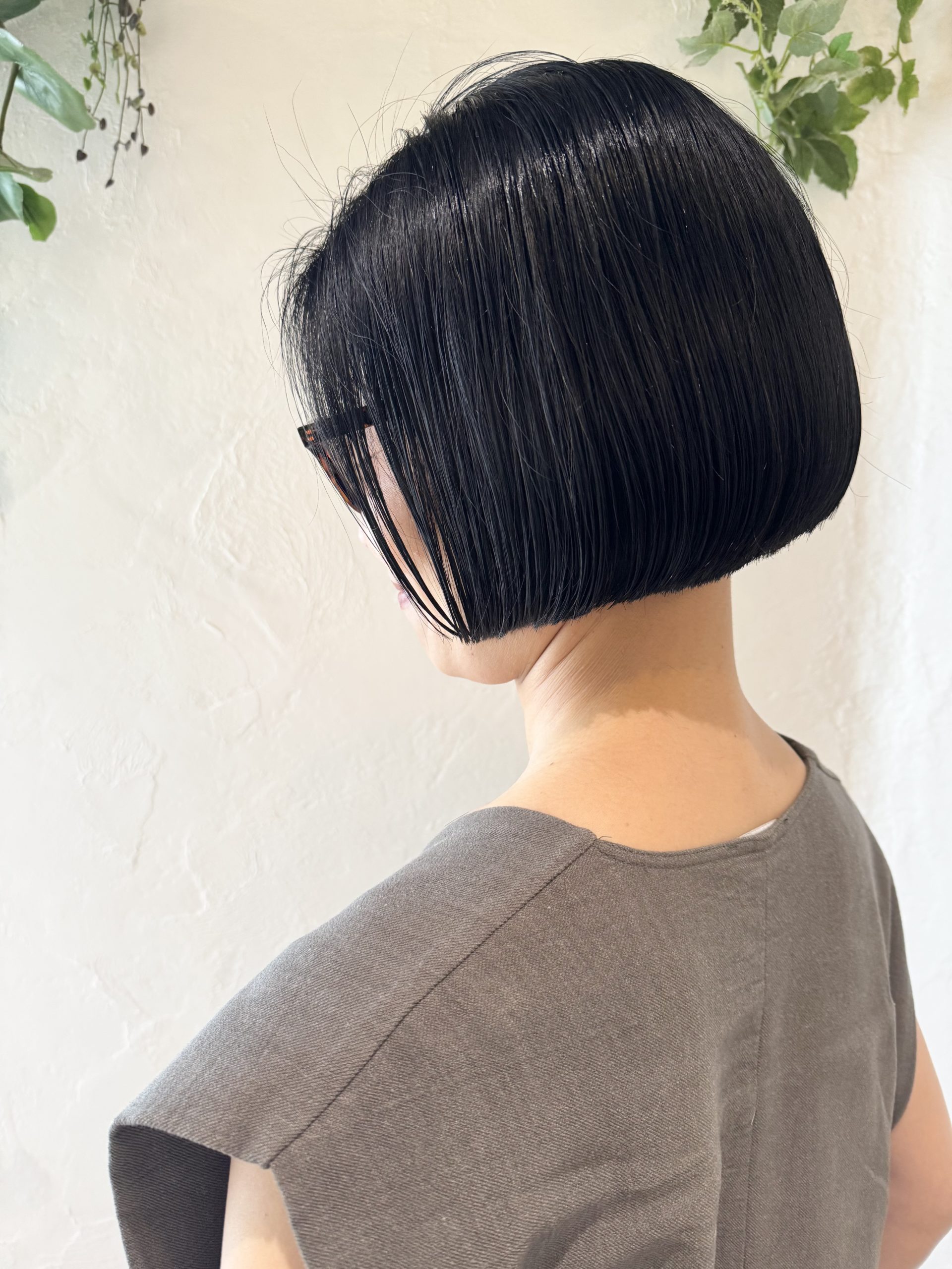 FRONT スタイルメニュー カット+オーガニックHカラーリタッチ スタイリストコメント hair/北崎麻美 定期的にメンテナンスして頂いている、 コンパクトなワンレングスボブ。 根本の白髪は、皮膚が弱いお客様のため 頭皮のピリピリが少なめの オーガニックカラー。 ※感じ方には個人差があります 艶やかな質感と手触りも魅力的です◎