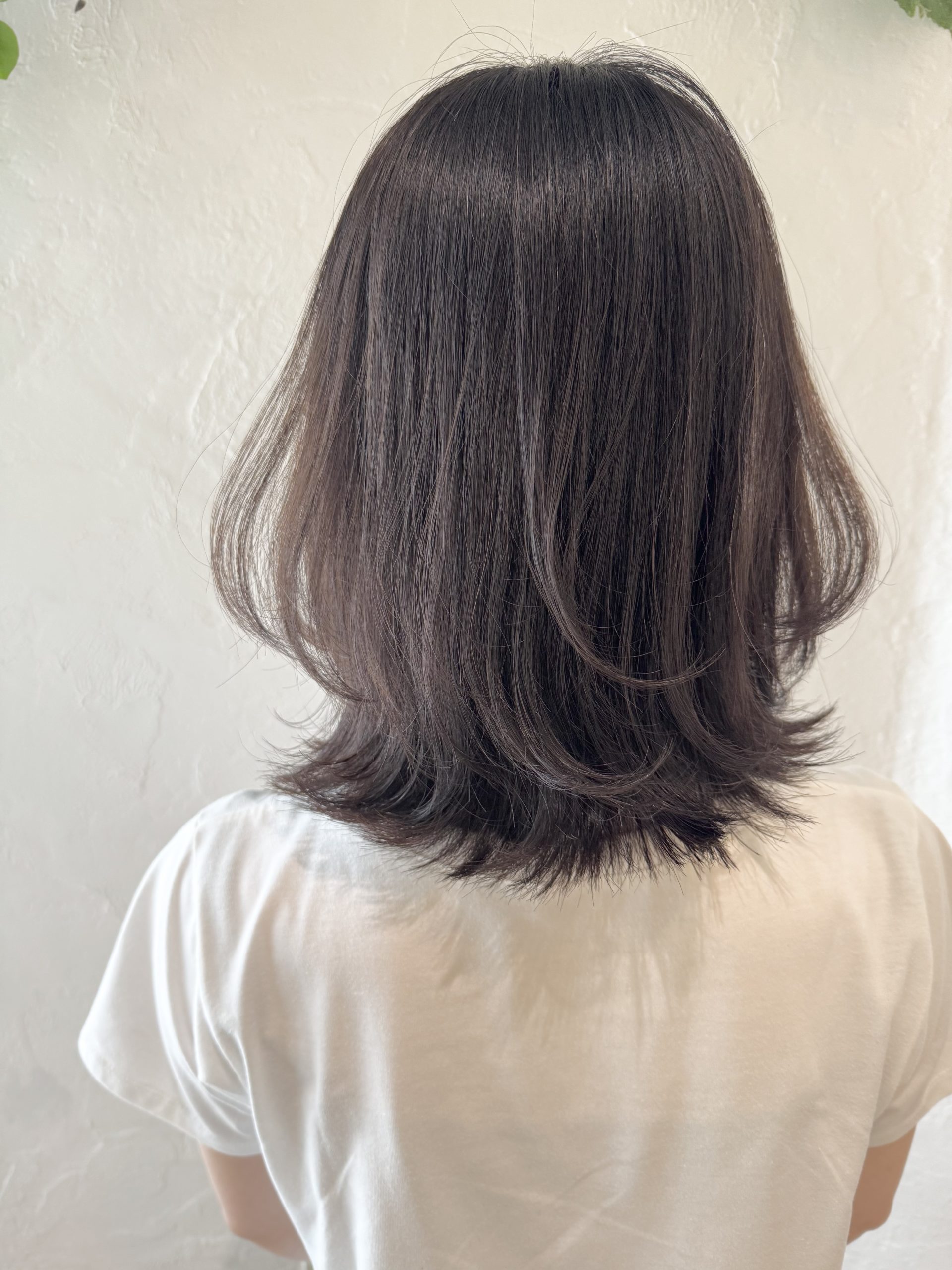 FRONT SIDE BACK スタイルメニュー カット+前処理トリートメント付きカラー スタイリストコメント hair/北崎麻美 伸ばしかけのミディアムスタイルに 髪全体を軽やかにしたい!とのご要望で 髪表面に軽く段差を入れ、 顔まわりにレイヤーを入れました◎ 毛先は自然と肩につくので そのままのハネを活かし、 顔まわりと髪表面には 軽く内巻き。 ヘアオイルを軽く髪全体に馴染ませて完成♪ 自然光に当たると透けて見える 暗めのアッシュカラーも 素敵でした◎